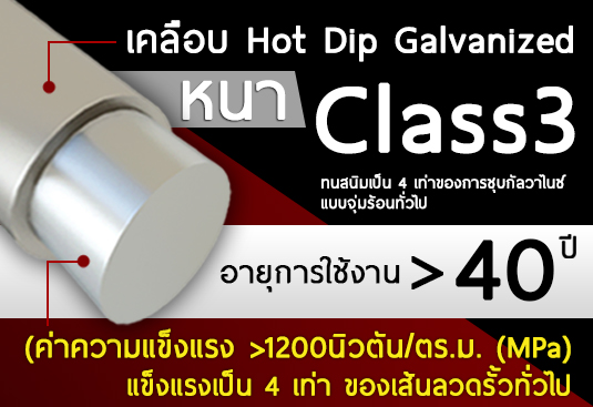 • เคลือบกัลวาไนซหนา คลาส 3 (230GSM) ทุกเส้น